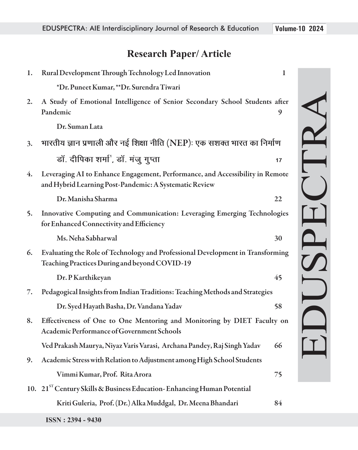Editor-in-Chief: Dr Abhilasha Gautam, Chief Editor, EDUSPECTRA Research Journal